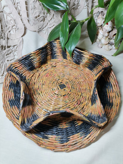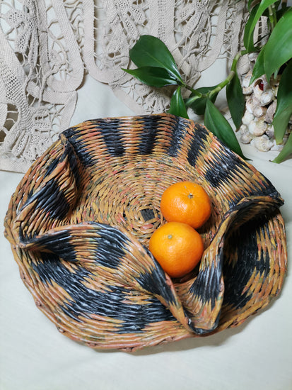 Ръчно изплетен панер с изразителни вълнообразни ръбове, които превръщат класическата форма в художествен акцент.